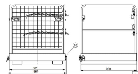 The pallet fork sleeves on the bottom of the platform run the entire 36" length of the cage and lock in place with pins for maximum security and stability.